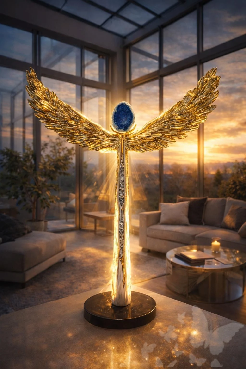 Tento anděl je nejen výraznou interiérovou dominantou, ale především symbolickým průvodcem, který do prostoru vnáší klid, sílu a pevnou naději.