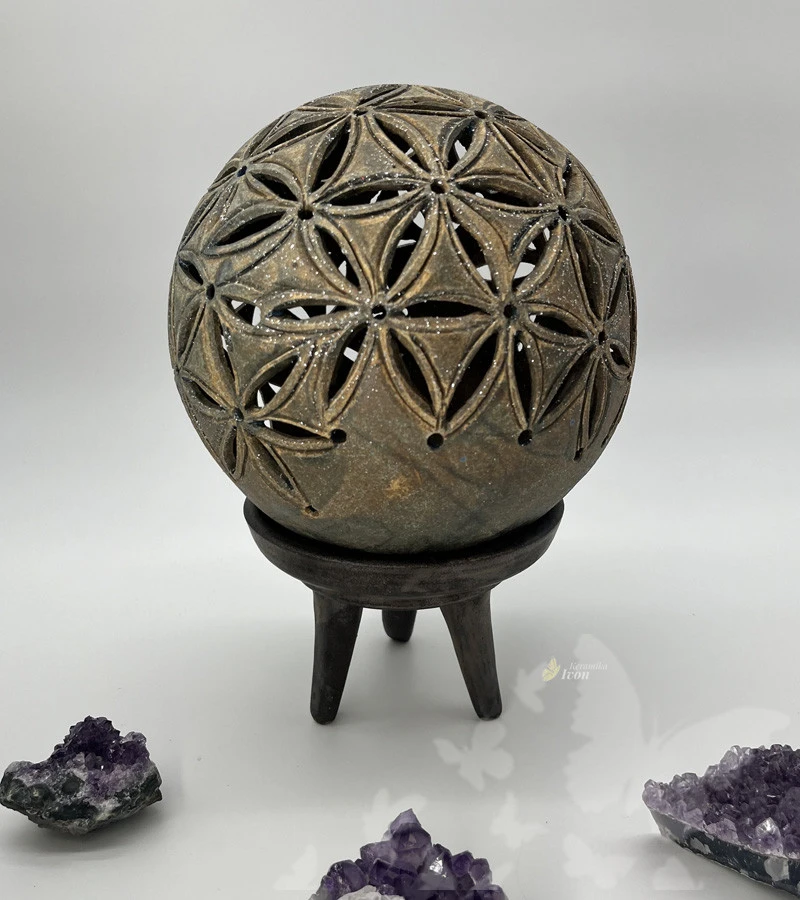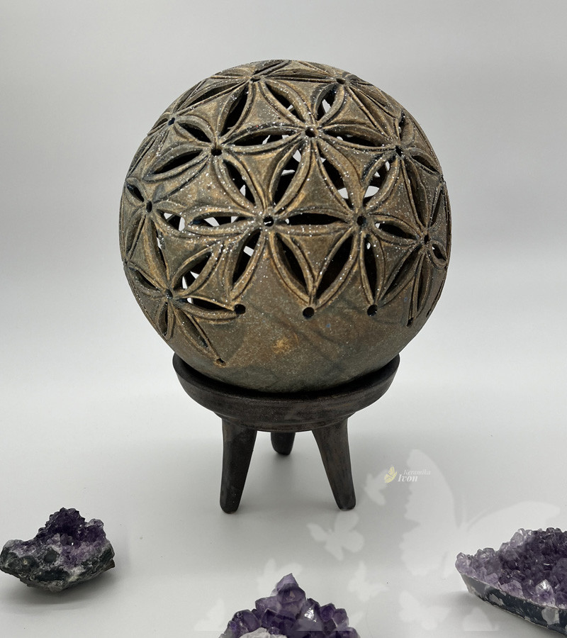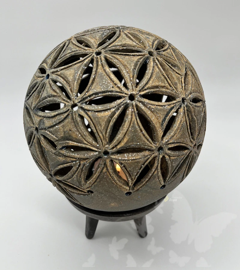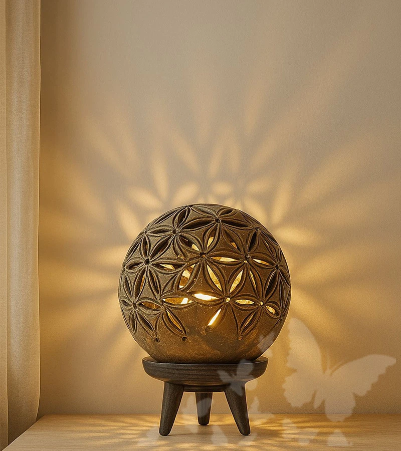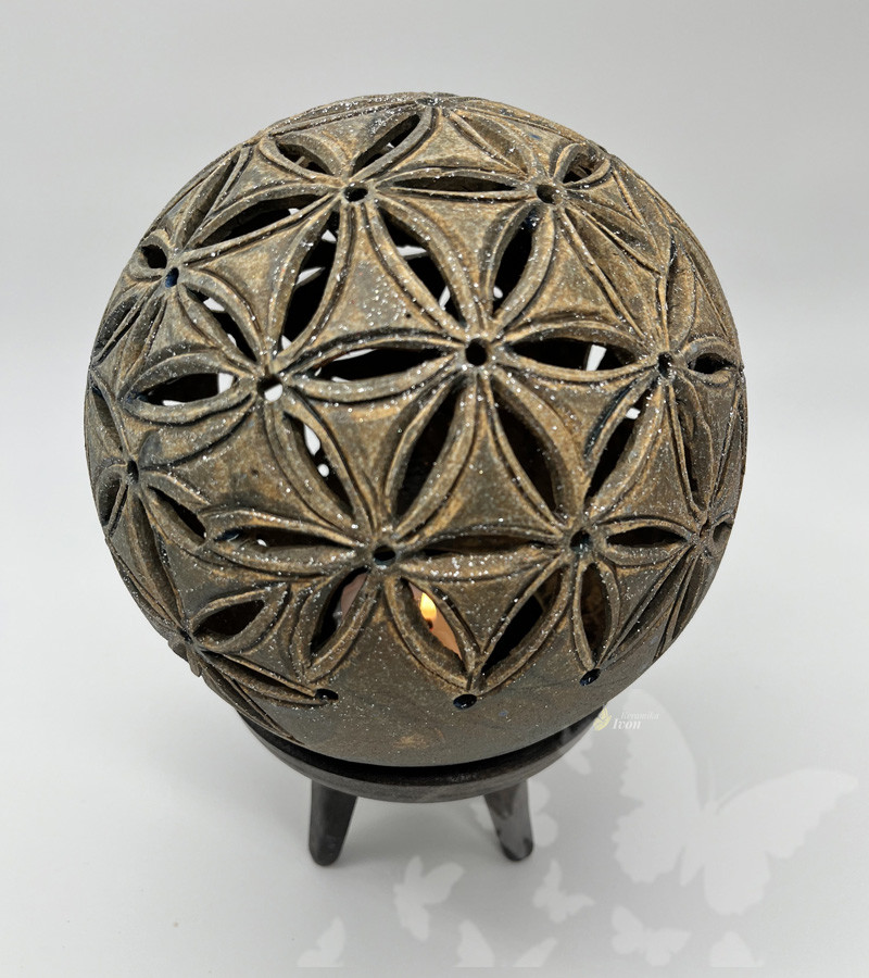 Lampička je ručně vyřezávaná podle posvátné geometrie.