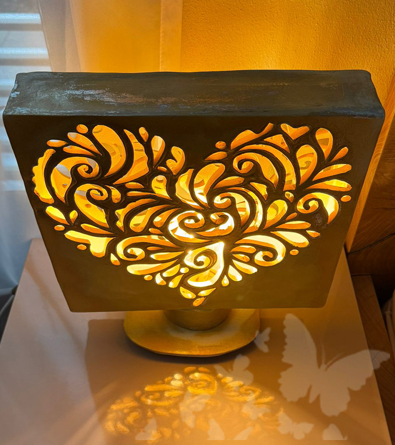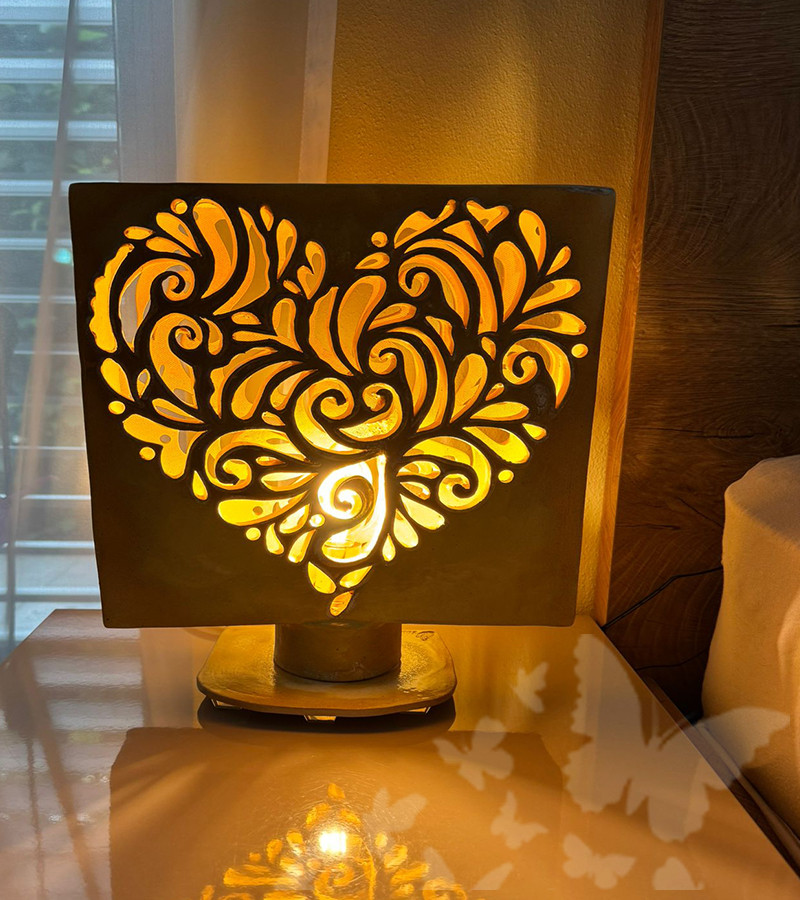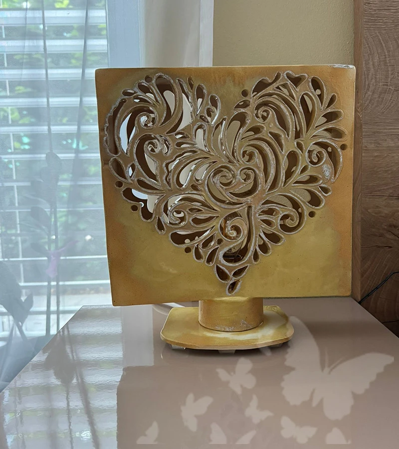 Keramická stolní lampa srdce – světlo harmonie (27 × 27 cm)