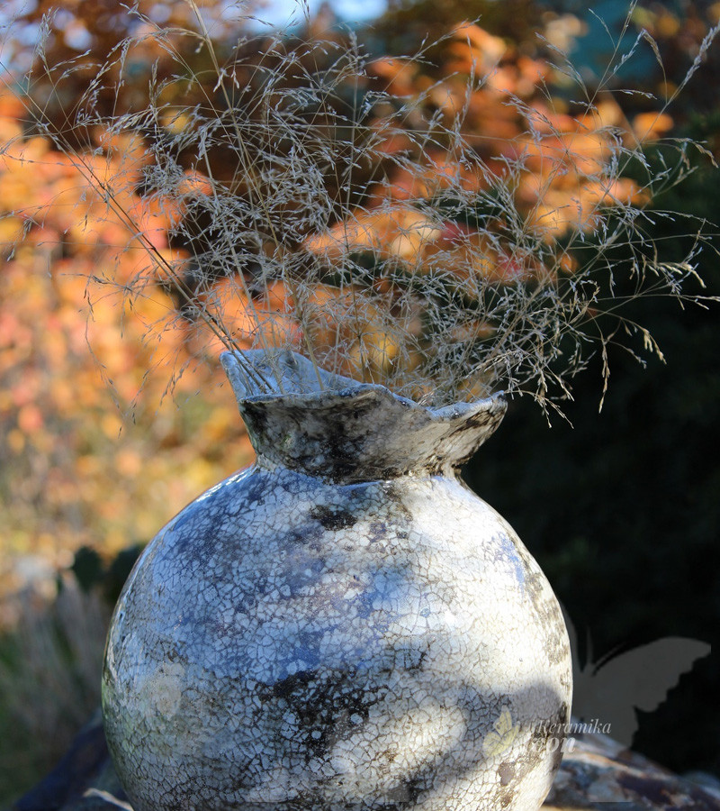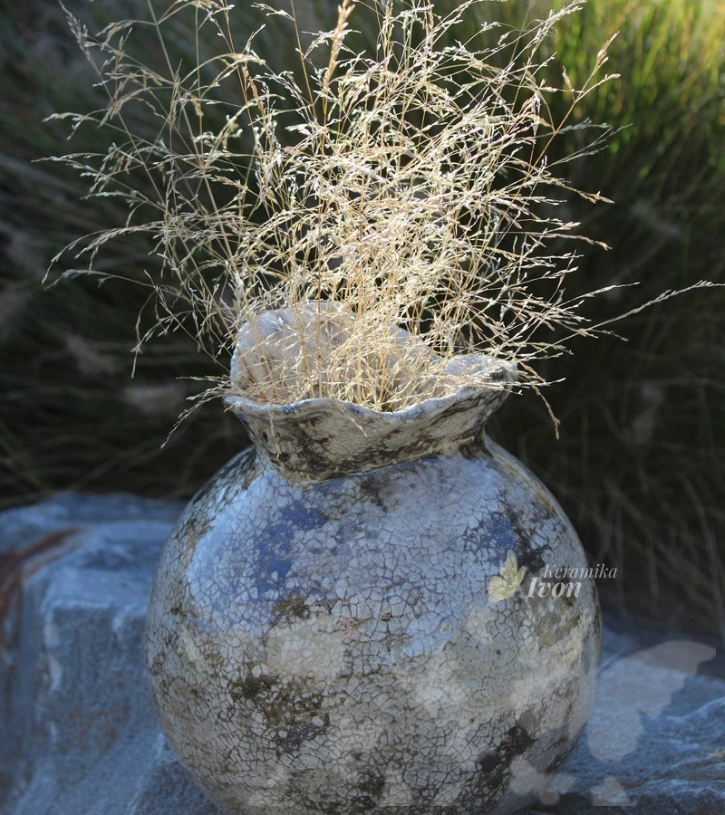 Rozměry: Váza je vysoká 21 cm o průměru18 cm.