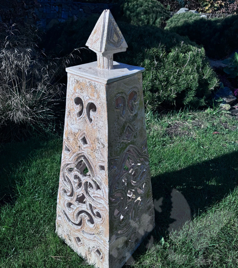 Vneste do svého domova dotek umění a klidu s touto exkluzivní, ručně vyřezávanou interiérovou lampou. Tato unikátní lampa s výškou 75 cm je mistrovským dílem, které okouzlí na první pohled svými precizními detaily a harmonickým designem. Její dominantní bílá barva je elegantně doplněna jemným zlatým dekorem, který podtrhuje sofistikovanost a originalitu. Krásné, propracované vzory, ručně vyřezávané s láskou a citem pro detail, vytvářejí fascinující hru světla a stínu, jakmile do ní vložíte osvětlení.