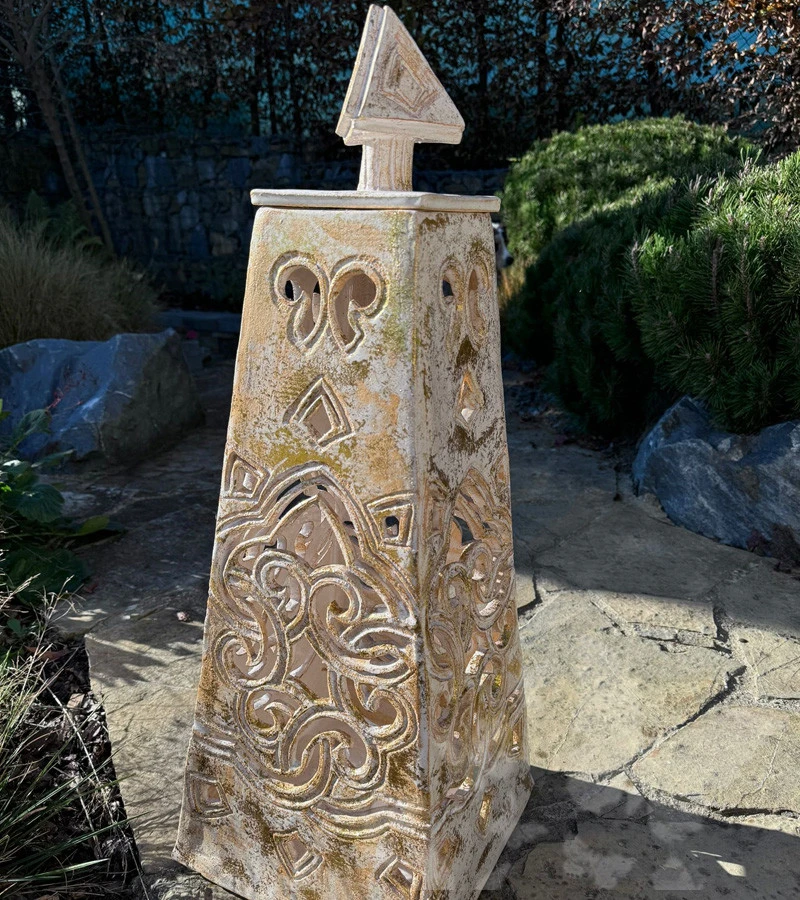 Tato 75 cm vysoká lampa není jen zdrojem světla, ale i designovým prvkem, který promění každý prostor v oázu klidu a pohody. Příjemné vzory vytvoří relaxační atmosféru a harmonické prostředí ve vašem domově. Představte si, jak se jemné světelné efekty linou z vyřezávaných vzorů a naplňují váš obývací pokoj, ložnici či pracovnu uklidňující září.